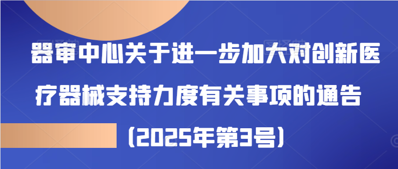 Circular of the Center for Instrument Review on Matters Concerning Further Increasing Support for Innovative Medical Devices (No. 3 [2025])